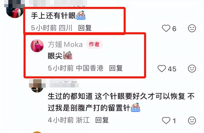 有人猜测是产后输液留下的,也有人担心她的身体状况。很快,方媛在评论区回应: