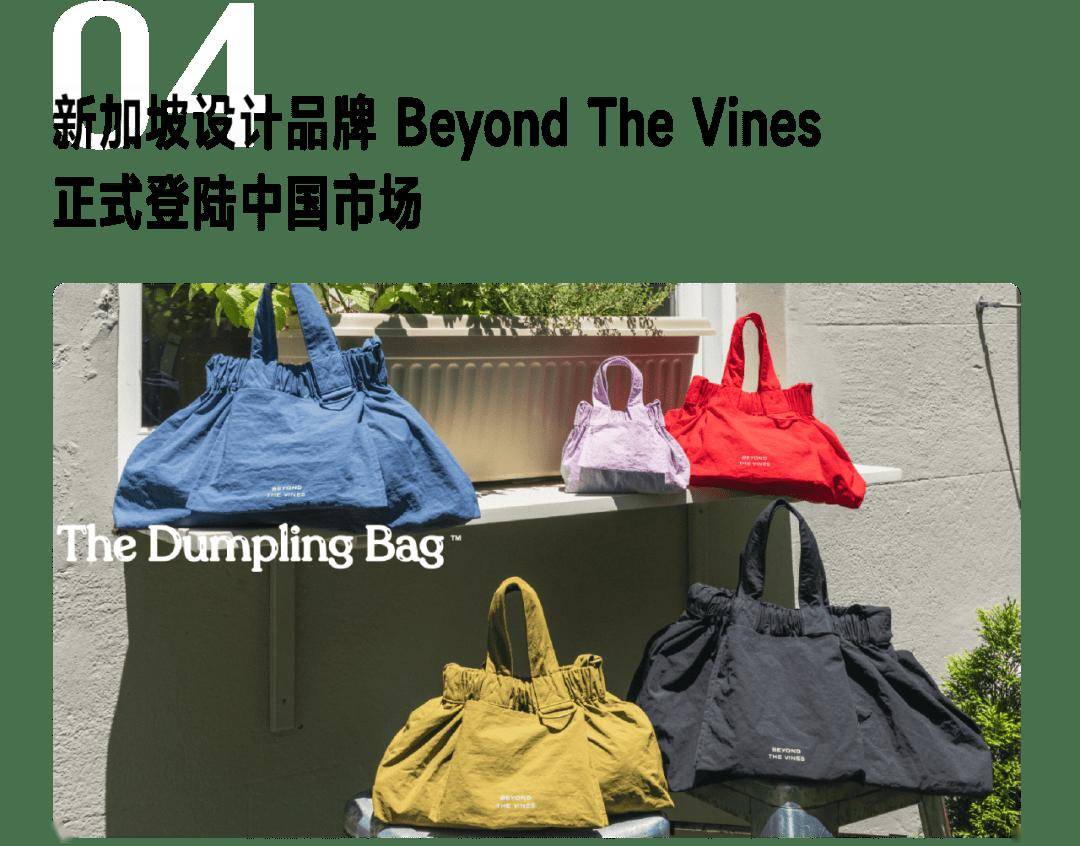 新加坡创意设计品牌 Beyond The Vines 近日宣布正式进入中国市场,天猫旗舰店已正式启幕,并于 10 月 17 日上线微信小程序,标志着品牌在中国零售渠道的全面布局。品牌还计划于今年 11 月在上海开设两家线下门店,进一步拓展市场版图。Beyond The Vines 以 “让优秀设计触手可及” 为理念,以简约与功能性见长,旗下标志性产品 Dumpling Bag(饺子包)因轻盈、防泼水及可折叠收纳设计而深受欢迎。